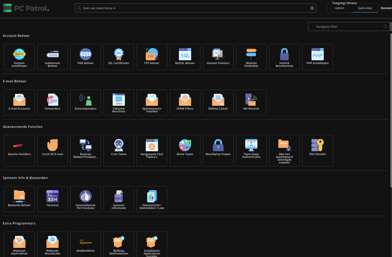 We starten op het dashboard van DirectAdmin.