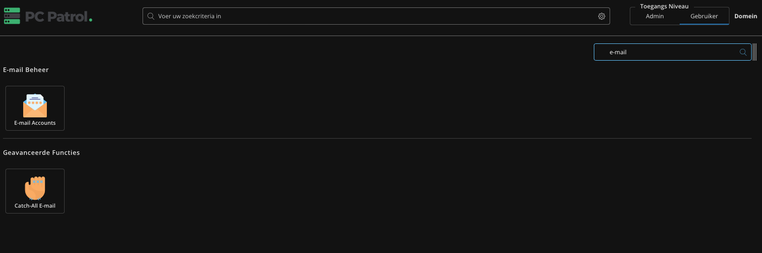 Gebruik het navigatiefilter en zoek op e-mail.