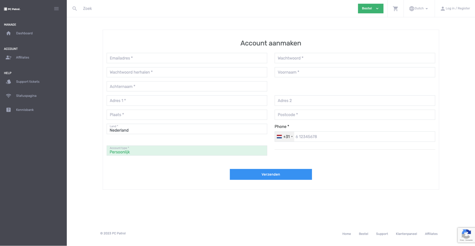 Nadat u het formulier volledig heeft ingevuld en op Verzenden heeft geklikt, wordt uw account aangemaakt. U kunt vervolgens direct inloggen met de door u ingestelde inloggegevens.