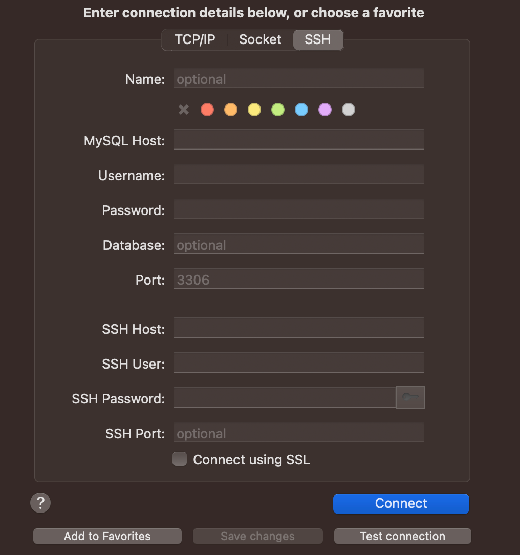 Vul de SSH-gegevens in die u van ons heeft ontvangen, samen met de databasegegevens (databasenaam, gebruikersnaam en wachtwoord).
