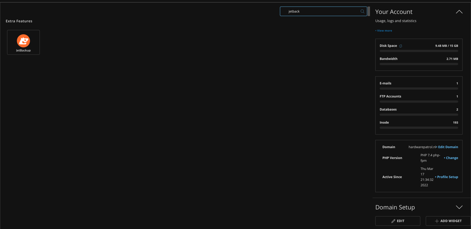 Binnenkort wordt JetBackup ook beschikbaar gesteld voor Plesk. Zodra deze ondersteuning beschikbaar is, zullen wij dit communiceren.
