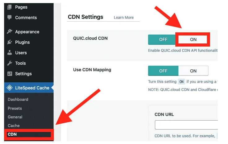 Ga naar LiteSpeed Cache > CDN en schakel de CDN-optie in.