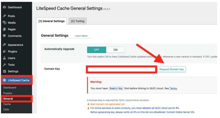 De domeinsleutel wordt gebruikt om je WordPress-website te koppelen aan QUIC.cloud.